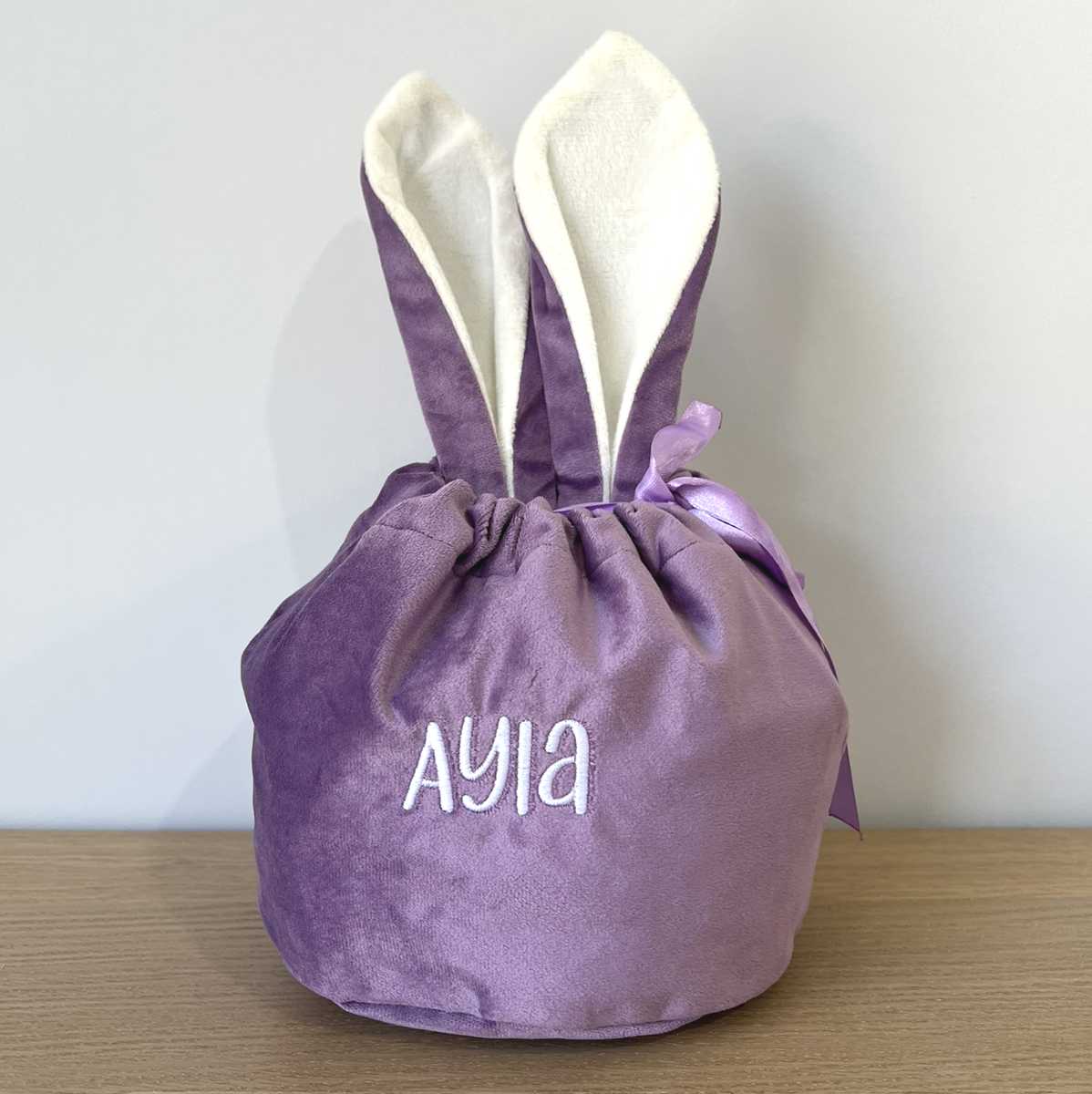 Make Easter morning extra special with a personalised velvet bunny bag, embroidered with your child's name.
