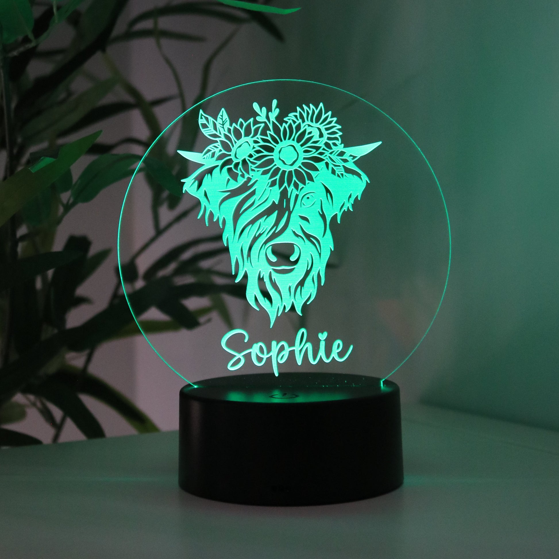 Light up your child's life!! With their very own personalised highland cow night light!!