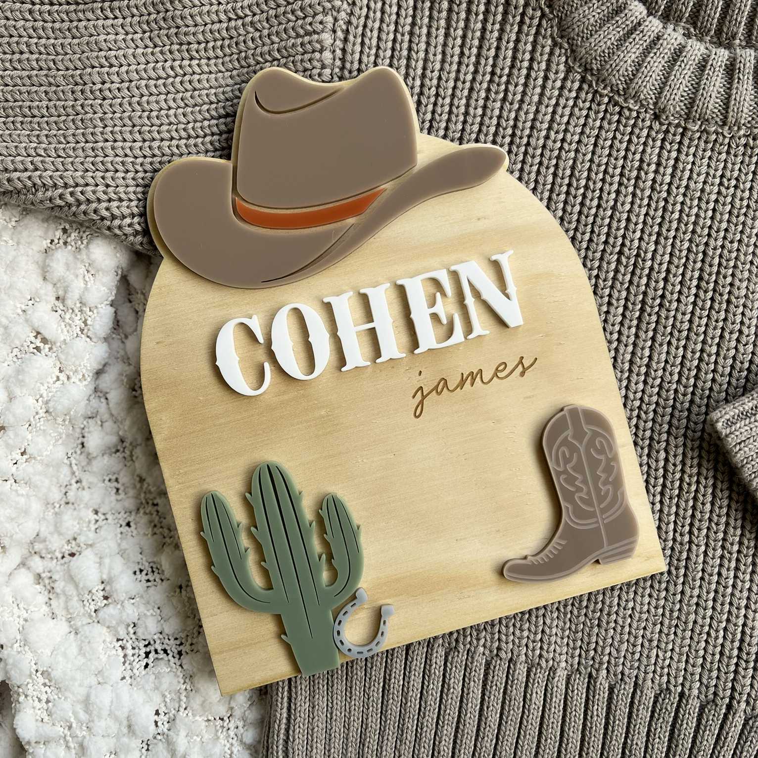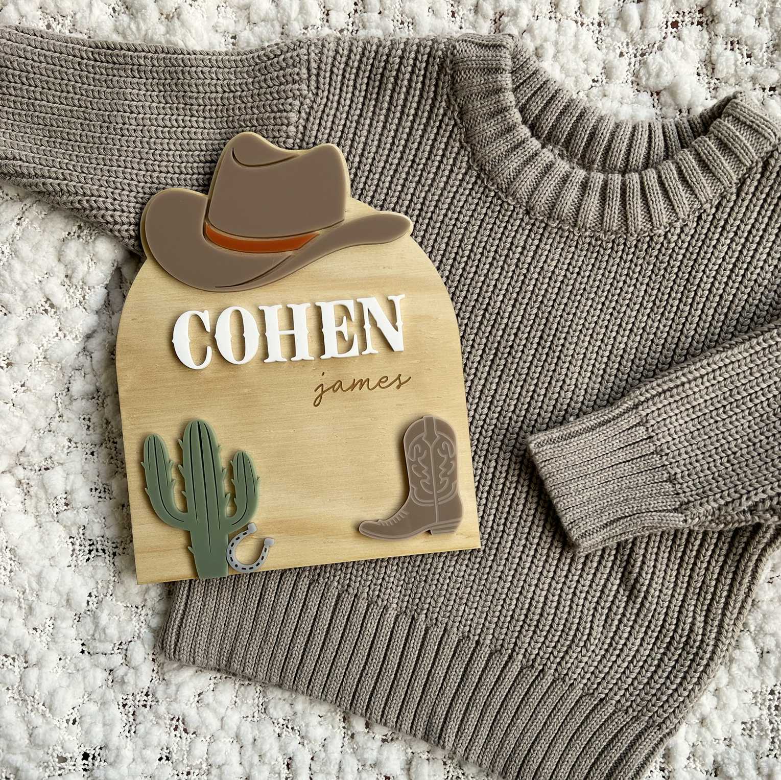 Western Theme Cowgirl or Cowboy Birth Name Announcement Plaque Wooden Keepsake